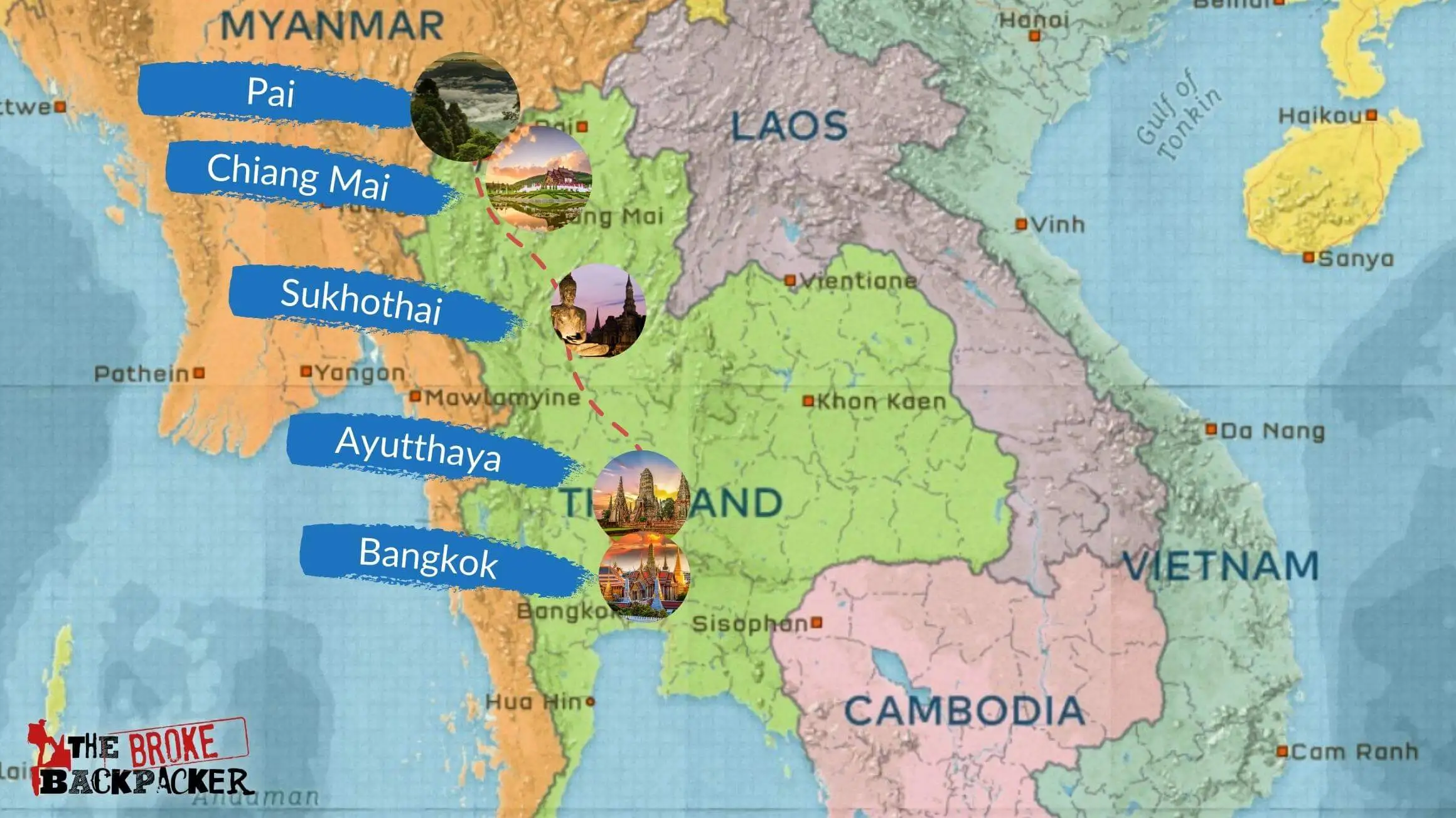Tayland'da bir sırt çantalı gezi rotası bulmak kolaydır, çünkü pek çok rota köklü olduğundan ve ipuçlarını alabileceğiniz çok sayıda sırt çantalı gezgin olduğundan. Baharatlı karpuz bulabileceğiniz destansı bir sokak yemeği satıcısını kimin önereceğini veya bazı yolların polisin rüşvet istemesiyle meşhur hale geldiğini size kimin bildireceğini asla bilemezsiniz.